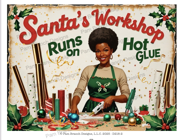 Design 2 – “Santa’s Workshop Runs on Hot Glue” - D218-2
