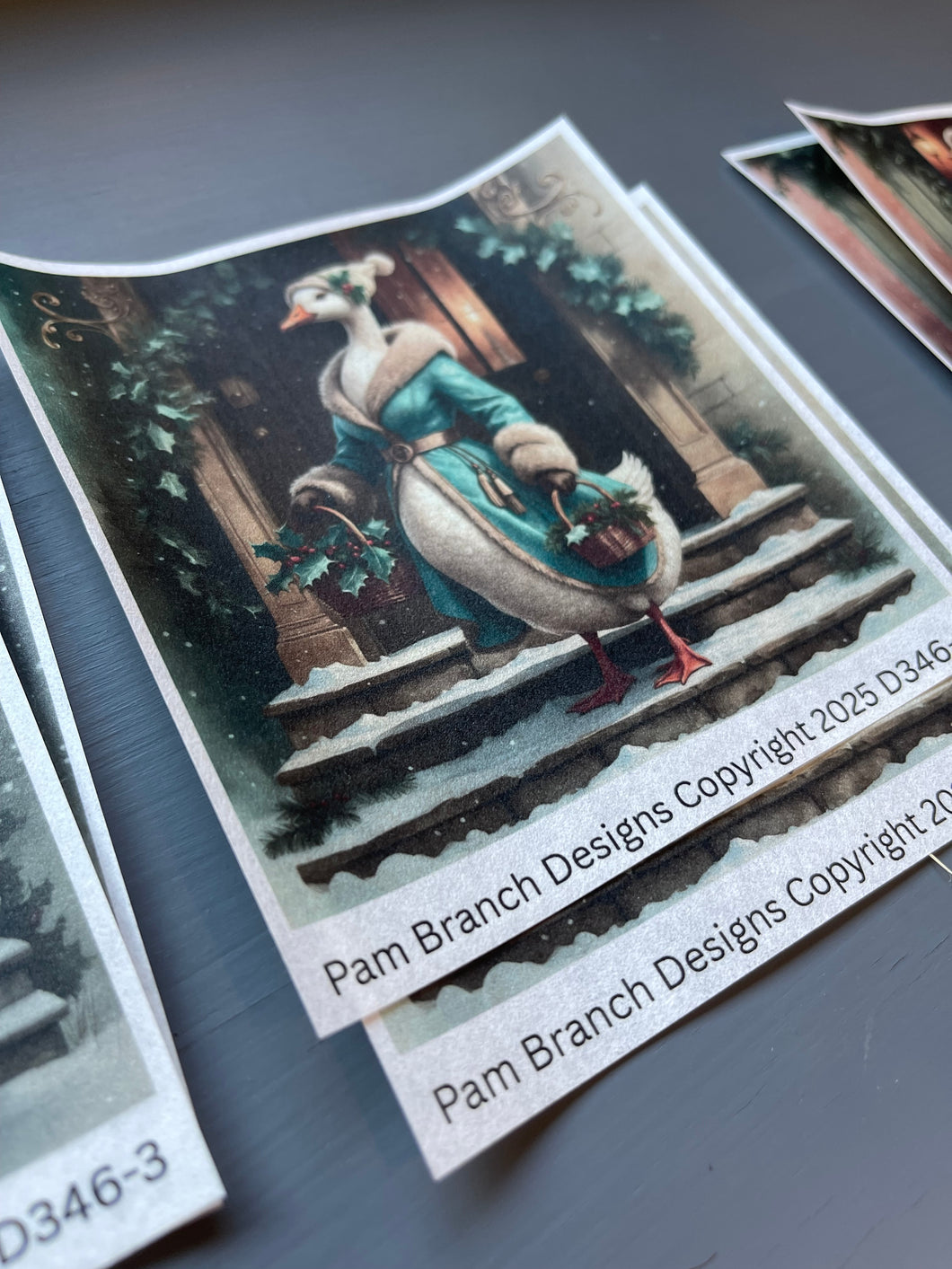 Decoupage Rice Paper Variety Pack – Victorian Christmas Goose Set of 4 Designs, Arts and Craft Bundle Supply, D346